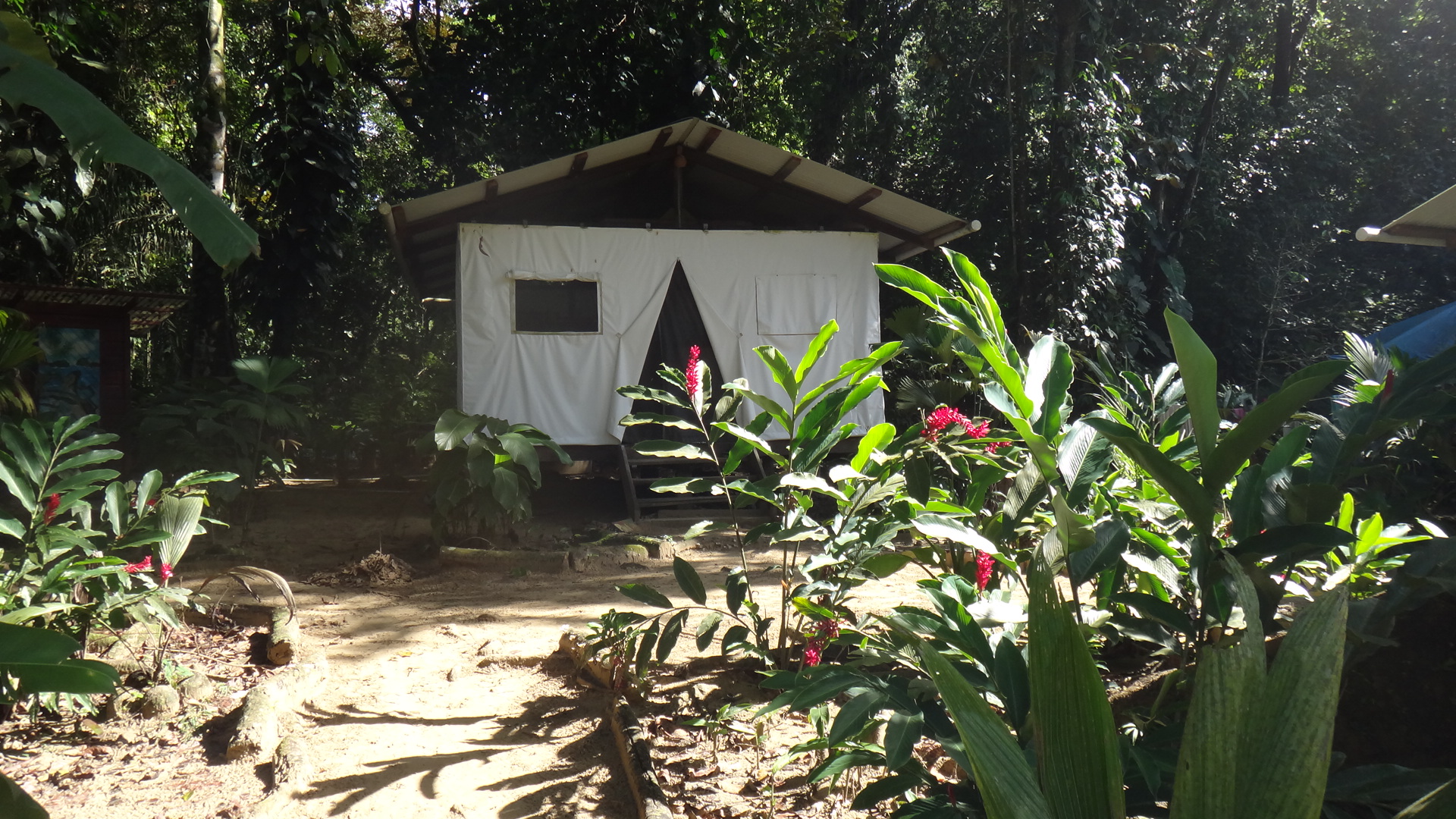 Costa Rica was a short 2 day stay. San Jose is not too exciting and really not all that much to see. It probably would have been better though if it wasn’t the start to Holy week as nothing and I mean nothing was pretty open. I left as quickly as I could on the next shuttle to Panama. It turned out to be a rainy drive to Puerto Veijo. We stopped here just long enough for lunch and finally to be able to step my feet in the Caribbean ocean. We switched shuttles for another short drive to the border which was probably the craziest border I saw on my whole trip. An old railroad bridge crossing over a pretty fast flowing river. Oh and no warning signs of how many missing planks there and loose bolts. I was just glad I didn’t trip or drop my passport. No signs for immigration no where and only maybe 2 cops the whole time. Then we drove a little further to the ferry (a little speed boat) to get out to Boca del Toro. From there I walked to a place called Casa Verde to await my next adventure volunteering with Give and Surf. I took one more boat to Bastimentos Island where I was brought to pure paradise. My home for the next 9 nights was Palmer Tent Lodge. I stayed in a dorm style canvas buildi                                      ng. Image